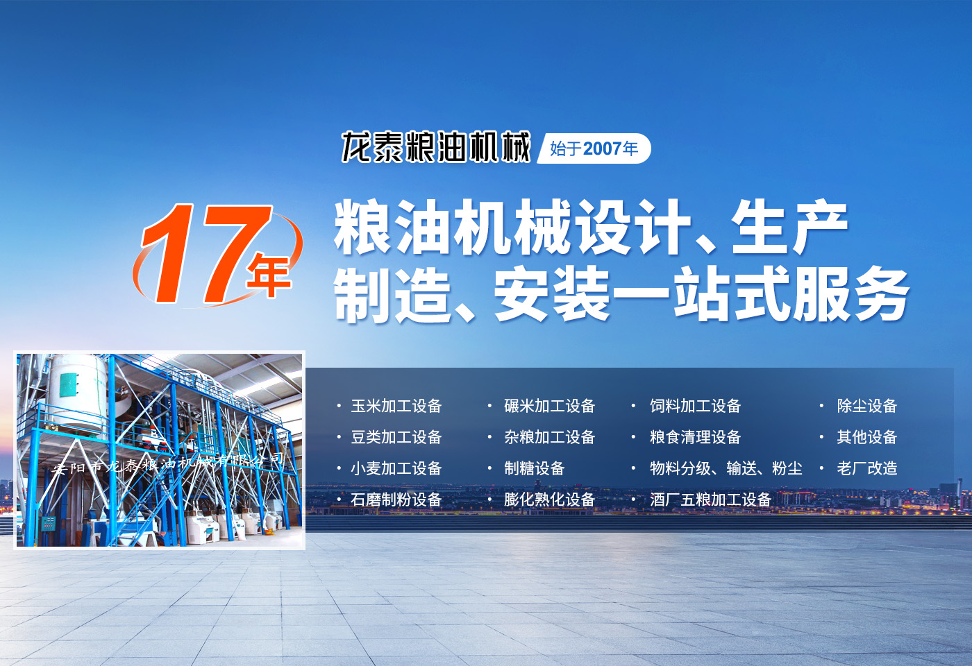 安陽市龍泰糧油機械有限公司是一個集糧油機械設計、生產制作、安裝于一體的設備制造商。公司坐落于農業生產基地河南省安陽市。多年來,公司與科研機構建立了廣泛的技術協作關系,精心致力于糧食加工設備的技術創新與應用,產品涵蓋整套碾米機械、小麥加工設備、玉米加工設備、雜糧加工設備,飼料加工及油脂設備等多個領域??沙薪尤椎慕昏€匙工程,提供從資金預算,整體規劃,土建設計,設備制造、安裝、培訓,售后保障等一站式服務。